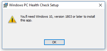 PC Health Check-asennus ei onnistu koska se vaatii että Windows 10 on päivitetty. Ei tullut Microsoftille mieleen että ehkä ohjelma pitäisi tehdä yhteensopivaksi vanhojen Windows-versioiden kanssa että ihmiset voi ajaa Windows 11 Installation Assistant-ohjelman tarkistamaan jos rauta on yhteensopivaa Windows 11 kanssa. Taidan asentaa tähänkin läppäriin Ubuntun.